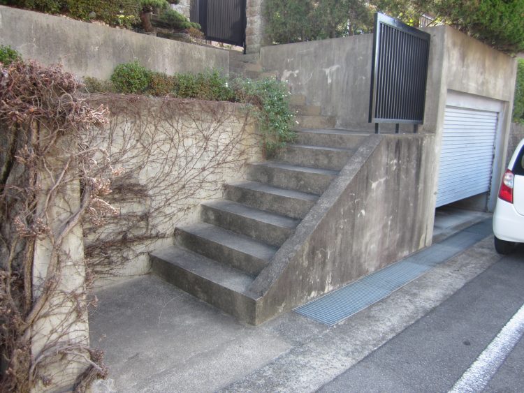 門までの階段アプローチは、コンクリートの打ちっぱなしでした。経年で汚れが気になり、お化粧直しをすることに・・・
