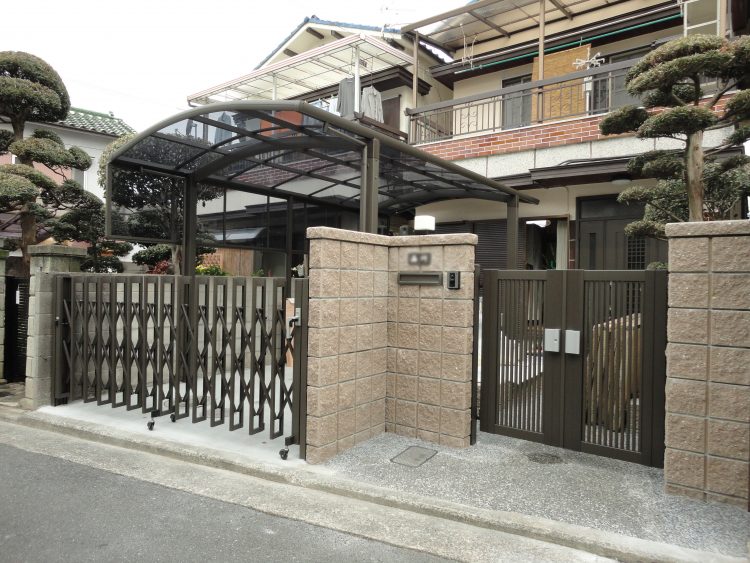 古くなったシャッター付きガレージを壊してカーポートにというご依頼。併せて古くなった門柱、門扉、アプローチ、玄関扉、雨戸などを全て入れ替えて、一新させたいとのご希望でした。色々なイメージ図をお見せして、変更に変更を重ねてやっとご希望どおりのイメージが出来上がりました。≪Before≫と比べてみても、圧迫感はなくなりスッキリとしました。きれいになったこの出来栄えに大変ご満足いただけました。